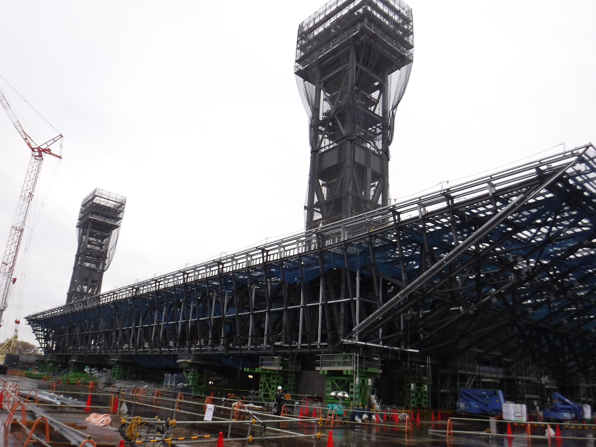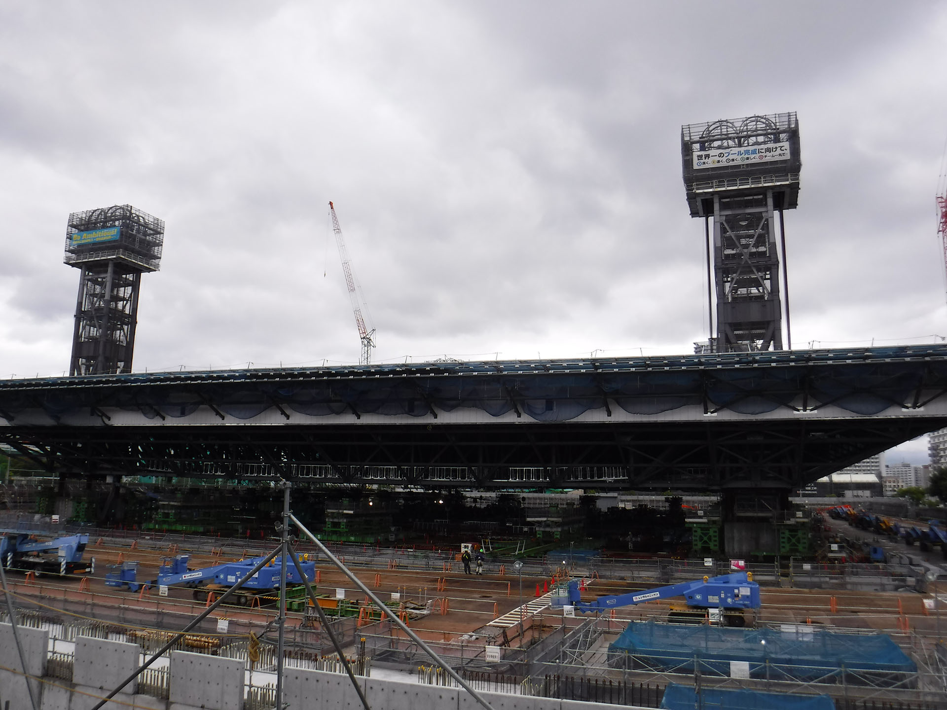 アクアティクスセンター大屋根部材のリフティング工事