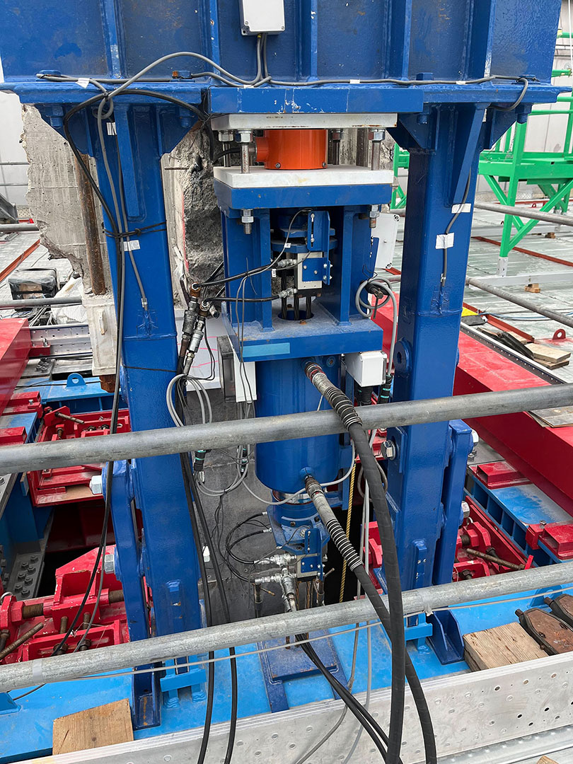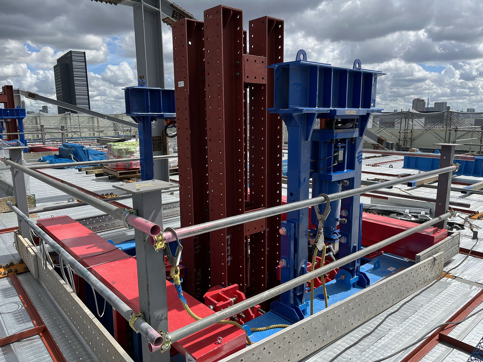 既存建物解体に伴う専用鉄骨フレームのロワリング工事